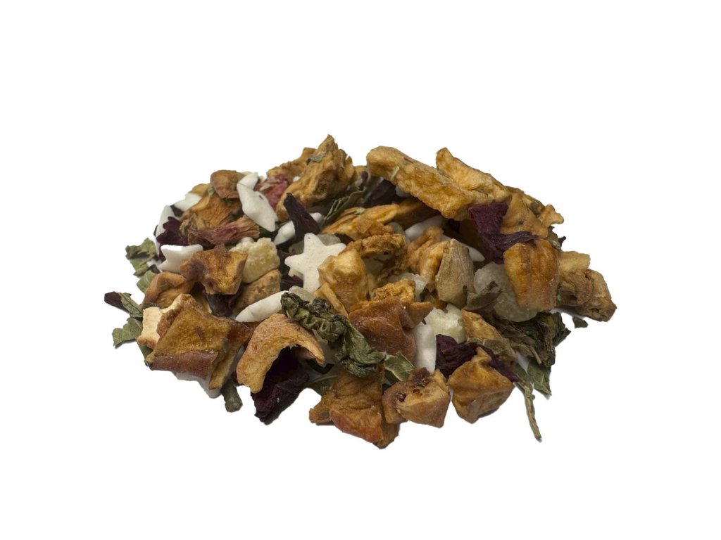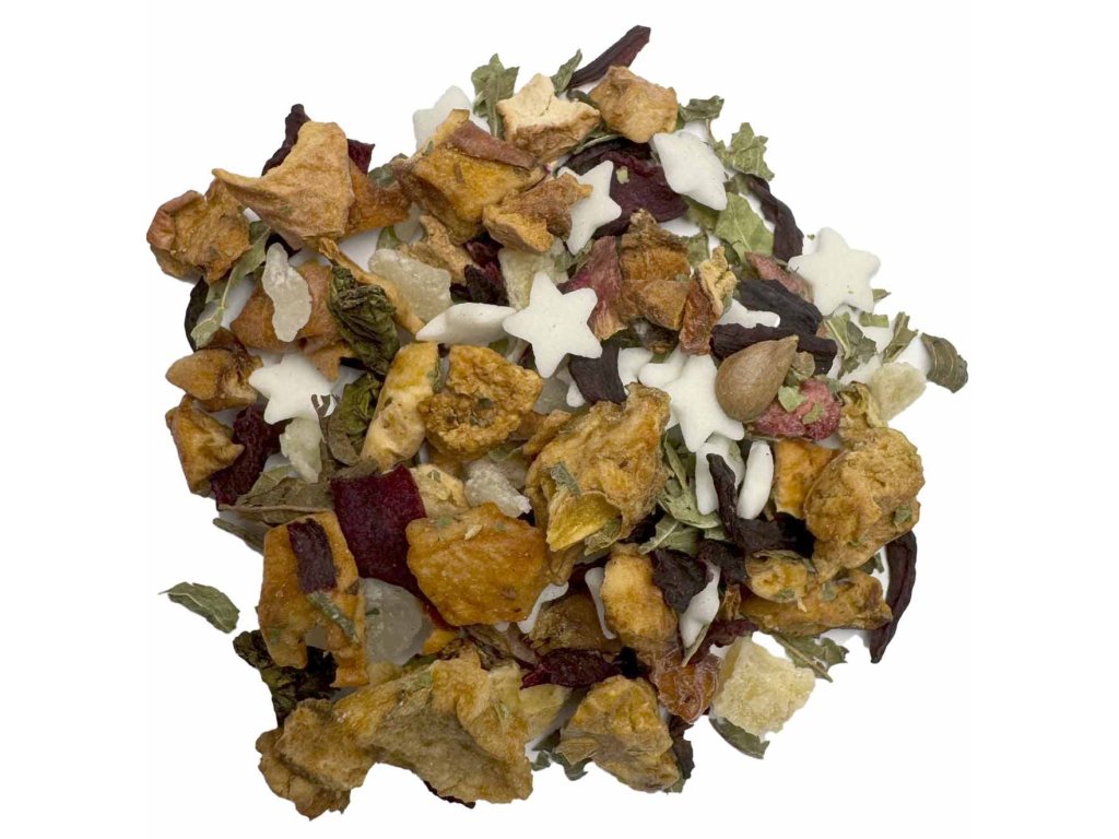 ibištek, cukrové hviezdičky (cukor, ryžová múka, rastlinné oleje a tuky (repkový),